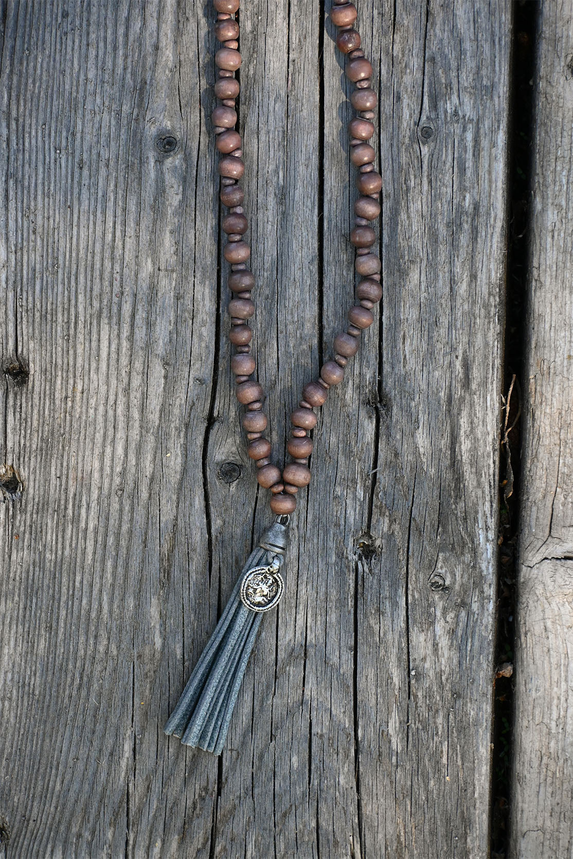 Dessa härliga halsband är gjorda av färgade träkulor, dekorerade med antingen en härlig tofs eller en liten medaljong.
